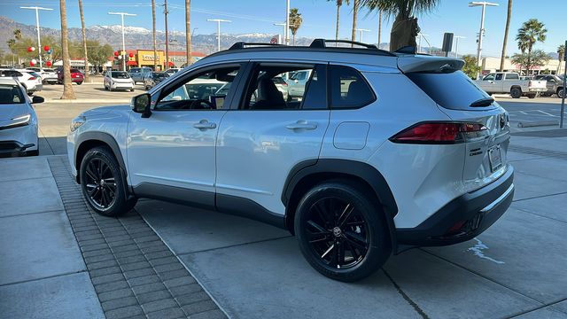 " We invite you to come experience the friendly Desert Toyota buying experience. "You'll definitely feel the difference!! Did you find your dream car on our website? Photos and pricing are uploaded quickly on a daily basis, therefore pricing does not reflect or include "taxes, title, license or dealer doc fee. All pricing and savings cannot be combined with any current advertised or special sales event price. This Toyota Corolla Cross is equipped with the following features: Convenience Package (PBD Auto and Easy Closer Door), 2.0L I4 PDI Hybrid DOHC 16V LEV3-SULEV30 150hp, 4-Wheel Disc Brakes, 6 Speakers, ABS brakes, Air Conditioning, All Weather Floor/Cargo Liners, Alloy wheels, AM/FM radio: SiriusXM, Apple CarPlay/Android Auto, Auto High-beam Headlights, Auto-dimming Rear-View mirror, Automatic temperature control, Be the first!! Fresh inventory, just arrived!!, Body Side Molding, Brake assist, Bumpers: body-color, Connected Services Trial Offering: 2 Additional, Cross Bars, Delay-off headlights, Driver door bin, Driver vanity mirror, Dual front impact airbags, Dual front side impact airbags, Electronic Stability Control, Emergency communication system: Safety Connect (up to 10-year trial subscription), Exterior Parking Camera Rear, Four wheel independent suspension, Front anti-roll bar, Front Bucket Seats, Front Center Armrest, Front dual zone A/C, Front fog lights, Front reading lights, Fully automatic headlights, Garage door transmitter: HomeLink, Heated door mirrors, Heated Front Bucket Seats, Heated front seats, Heated steering wheel, Illuminated entry, IMB and Alarm (Horn) Anti-Theft System, Knee airbag, Leather steering wheel, Low tire pressure warning, Mudguards, Multimedia Glass Screen Protector, Occupant sensing airbag, Outside temperature display, Overhead airbag, Panic alarm, Passenger door bin, Passenger vanity mirror, Power door mirrors, Power driver seat, Power steering, Power windows, Radio data system, Radio: 10.5" Toyota Audio Multimedia with 6 Speakers, Radio: JBL Premium Audio with 9 Speakers, Rear anti-roll bar, Rear seat center armrest, Rear side impact airbag, Rear window defroster, Rear window wiper, Remote keyless entry, SiriusXM Trial Offering: 33 Months, SofTex Mixed Media Seat Trim, Speed control, Split folding rear seat, Spoiler, Steering wheel mounted audio controls, Tachometer, Telescoping steering wheel, Tilt steering wheel, Traction control, Trip computer, Turn signal indicator mirrors, Variably intermittent wipers, and Wheels: 18" Black-Finished Alloy.