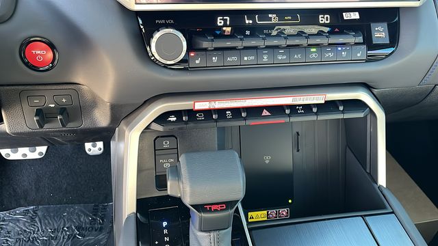 " We invite you to come experience the friendly Desert Toyota buying experience. "You'll definitely feel the difference!! Did you find your dream car on our website? Photos and pricing are uploaded quickly on a daily basis, therefore pricing does not reflect or include "taxes, title, license or dealer doc fee. All pricing and savings cannot be combined with any current advertised or special sales event price. This Toyota Sequoia is equipped with the following features: Tow Technology Package (Wireless Trailer Camera System), TRD Off-Road Package (Aluminum Sport Pedals, Aluminum Step and Step Cover, Crawl Control (CRAWL), Downhill Assist Control (DAC), Electronically-Controlled Locking Rear Differential, Multi-Terrain Back Monitor (MTM), Multi-Terrain Select (MTS), Off-Road Suspension with Bilstein Shocks, Red Front-Axle Drive Shafts, TRD Leather Shift Knob, TRD OFF-ROAD Badging, and Wheels: 20" Black TRD Alloy), V6 Hybrid, 10-Speed Automatic, 4WD, 14 Speakers, 3rd row seats: split-bench, 4-Wheel Disc Brakes, ABS brakes, Air Conditioning, All-Weather Liners/Cargo Mat, Alloy wheels, AM/FM radio: SiriusXM, Anti-whiplash front head restraints, Apple CarPlay/Android Auto, Auto High-beam Headlights, Auto tilt-away steering wheel, Auto-dimming door mirrors, Auto-dimming Rear-View mirror, Automatic temperature control, Be the first!! Fresh inventory, just arrived!!, Brake assist, Bumpers: body-color, Compass, Delay-off headlights, Driver door bin, Driver vanity mirror, Dual front impact airbags, Dual front side impact airbags, Electronic Stability Control, Emergency communication system: Safety Connect (10-year trial), Exterior Parking Camera Rear, Front anti-roll bar, Front Bucket Seats, Front Center Armrest w/Storage, Front dual zone A/C, Front fog lights, Front reading lights, Front wheel independent suspension, Fully automatic headlights, Garage door transmitter: HomeLink, Head Up Display (HUD), Headlight cleaning, Heated and Ventilated Front Seats, Heated door mirrors, Heated front seats, Heated rear seats, Heated steering wheel, Illuminated entry, Knee airbag, Leather steering wheel, Low tire pressure warning, Memory seat, Multimedia Glass Screen Protector, Navigation system: Drive Connect (1 year trial) includes Cloud Navigation with real time traffic and Google POI, Occupant sensing airbag, Outside temperature display, Overhead airbag, Overhead console, Panic alarm, Passenger door bin, Passenger vanity mirror, Power door mirrors, Power driver seat, Power Liftgate, Power moonroof, Power passenger seat, Power steering, Power windows, Premium audio system: JBL, Premium Leather Seat Trim, Radio: 14" Toyota Audio Multimedia with JBL Premium Audio, Rain sensing wipers, Rear air conditioning, Rear reading lights, Rear seat center armrest, Rear window defroster, Rear window wiper, Reclining 3rd row seat, Remote keyless entry, Security system, Speed control, Speed-sensing steering, Split folding rear seat, Spoiler, Steering wheel mounted audio controls, Tachometer, Telescoping steering wheel, Tilt steering wheel, Traction control, Trip computer, Turn signal indicator mirrors, Variably intermittent wipers, Ventilated front seats, Ventilated rear seats, Voltmeter, and Wheels: 20" Machined-Finish Black Alloy.