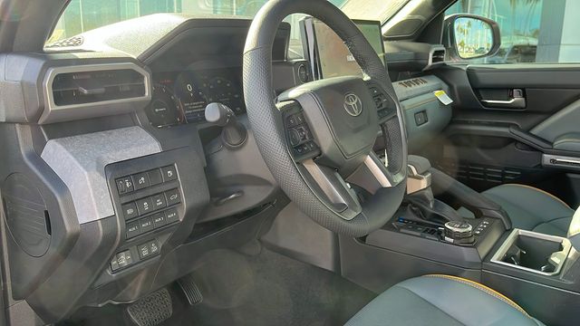 " We invite you to come experience the friendly Desert Toyota buying experience. "You'll definitely feel the difference!! Did you find your dream car on our website? Photos and pricing are uploaded quickly on a daily basis, therefore pricing does not reflect or include "taxes, title, license or dealer doc fee. All pricing and savings cannot be combined with any current advertised or special sales event price. This Toyota Tacoma Hybrid is equipped with the following features: Trailhunter Package, 2.4L 4-Cylinder, 3.583 Axle Ratio, 4-Wheel Disc Brakes, 9 Speakers, ABS brakes, Air Conditioning, Alloy wheels, AM/FM radio: SiriusXM, Anti-whiplash front head restraints, Apple CarPlay/Android Auto, Auto High-beam Headlights, Auto-dimming Rear-View mirror, Automatic temperature control, Be the first!! Fresh inventory, just arrived!!, Black Badge Overlay, Black Tailgate Insert, Brake assist, Bumpers: body-color, Driver door bin, Driver vanity mirror, Dual front impact airbags, Dual front side impact airbags, Electronic Stability Control, Emergency communication system: Safety Connect (up to 10-year trial subscription), Exterior Parking Camera Rear, Four wheel independent suspension, Front anti-roll bar, Front Bucket Seats, Front Center Armrest, Front dual zone A/C, Front fog lights, Front reading lights, Fully automatic headlights, Garage door transmitter: HomeLink, Heated and Ventilated Front Bucket Seats, Heated door mirrors, Heated front seats, Heated steering wheel, Illuminated entry, JBL Premium Audio, Knee airbag, Leather Shift Knob, Leather steering wheel, Low tire pressure warning, Mudguards, Navigation system: Drive Connect Cloud Navigation (1-year trial subscription), Occupant sensing airbag, Outside temperature display, Overhead airbag, Overhead console, Panic alarm, Passenger door bin, Passenger vanity mirror, Power door mirrors, Power driver seat, Power passenger seat, Power steering, Power windows, Radio: 14" Toyota Audio Multimedia, Rear anti-roll bar, Rear step bumper, Rear window defroster, Remote keyless entry, Security system, SofTex Seat Trim, Speed control, Speed-sensing steering, Split folding rear seat, Steering wheel mounted audio controls, Tachometer, Telescoping steering wheel, Tilt steering wheel, Traction control, Trip computer, Turn signal indicator mirrors, Variably intermittent wipers, Ventilated front seats, Wheels: 18" Bronze-Finished Trailhunter Alloy, and White Grille Letter Overlay.