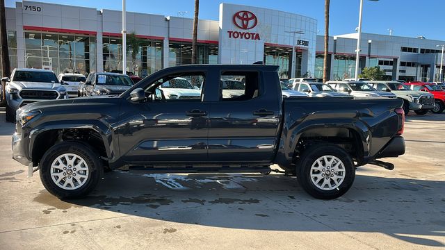" We invite you to come experience the friendly Desert Toyota buying experience. "You'll definitely feel the difference!! Did you find your dream car on our website? Photos and pricing are uploaded quickly on a daily basis, therefore pricing does not reflect or include "taxes, title, license or dealer doc fee. All pricing and savings cannot be combined with any current advertised or special sales event price. This Toyota Tacoma is equipped with the following features: 4WD, 3.583 Axle Ratio, 4-Wheel Disc Brakes, 6 Speakers, ABS brakes, Air Conditioning, All Weather Floor Liners, Alloy wheels, AM/FM radio: SiriusXM, Anti-whiplash front head restraints, Apple CarPlay/Android Auto, Auto High-beam Headlights, Be the first!! Fresh inventory, just arrived!!, Black Badge Overlay, Black Tailgate Insert, Brake assist, Bumpers: body-color, Cast Aluminum Running Boards, Driver door bin, Dual front impact airbags, Dual front side impact airbags, Electronic Stability Control, Emergency communication system: Safety Connect (up to 10-year trial subscription), Exterior Parking Camera Rear, Fabric Seat Trim, Front anti-roll bar, Front Bucket Seats, Front Center Armrest, Front reading lights, Front wheel independent suspension, Fully automatic headlights, Heated door mirrors, Illuminated entry, Knee airbag, Low tire pressure warning, Multimedia Glass Screen Protector, Occupant sensing airbag, Outside temperature display, Overhead airbag, Overhead console, Passenger door bin, Power door mirrors, Power steering, Power windows, Radio: 8" Toyota Audio Multimedia, Rear step bumper, Rear window defroster, Remote keyless entry, Speed control, Speed-sensing steering, Split folding rear seat, Spray-on Bed Liner, Steering wheel mounted audio controls, Tachometer, Telescoping steering wheel, Tilt steering wheel, Traction control, Trip computer, Variably intermittent wipers, and Wheels: 17" Styled Alloy.
