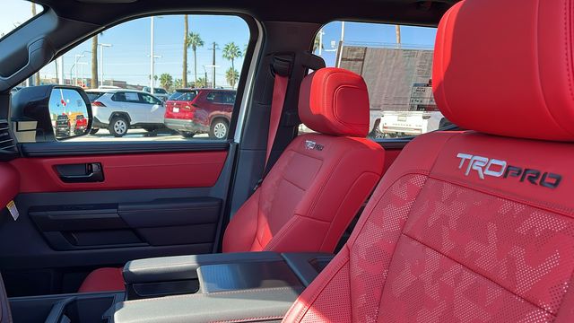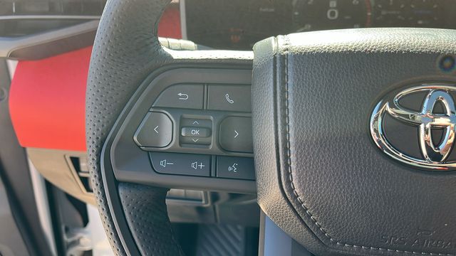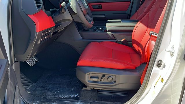 " We invite you to come experience the friendly Desert Toyota buying experience. "You'll definitely feel the difference!! Did you find your dream car on our website? Photos and pricing are uploaded quickly on a daily basis, therefore pricing does not reflect or include "taxes, title, license or dealer doc fee. All pricing and savings cannot be combined with any current advertised or special sales event price. This Toyota Tundra Hybrid is equipped with the following features: TRD Pro Package, 3.4L V6, 12 Speakers, 3.31 Axle Ratio, 4-Wheel Disc Brakes, ABS brakes, Air Conditioning, Alloy wheels, AM/FM radio: SiriusXM, Apple CarPlay/Android Auto, Auto High-beam Headlights, Auto-dimming door mirrors, Auto-dimming Rear-View mirror, Automatic temperature control, Badge Overlays - Red (TMS), Be the first!! Fresh inventory, just arrived!!, Bed Step (TMS), Black Front Bumper Letters (TMS), Brake assist, Bumpers: body-color, Delay-off headlights, Driver door bin, Driver vanity mirror, Dual front impact airbags, Dual front side impact airbags, Electronic Stability Control, Emergency communication system: Safety Connect (up to 10-year trial subscription), Exterior Parking Camera Rear, Front anti-roll bar, Front Bucket Seats, Front Center Armrest, Front dual zone A/C, Front fog lights, Front reading lights, Front wheel independent suspension, Fully automatic headlights, Garage door transmitter: HomeLink, Heated & Ventilated Front Bucket Seats, Heated door mirrors, Heated front seats, Illuminated entry, Knee airbag, Leather Shift Knob, Leather steering wheel, Low tire pressure warning, Memory seat, Navigation system: Drive Connect Cloud Navigation (1-year trial subscription), Occupant sensing airbag, Outside temperature display, Overhead airbag, Overhead console, Panic alarm, Passenger door bin, Passenger vanity mirror, Power door mirrors, Power driver seat, Power moonroof, Power passenger seat, Power steering, Power windows, Radio data system, Radio: Audio Multimedia System w/JBL, Rear reading lights, Rear seat center armrest, Rear step bumper, Rear window defroster, Remote keyless entry, Security system, SofTex Seat Trim, Speed control, Speed-sensing steering, Split folding rear seat, Sport steering wheel, Steering wheel mounted audio controls, Tachometer, Telescoping steering wheel, Tilt steering wheel, Traction control, TRD Cast Aluminum Running Board (TMS), TRD Pro Reflective Bed Lettering (TMS), Trip computer, Turn signal indicator mirrors, Variably intermittent wipers, Ventilated front seats, Voltmeter, and Wheels: 18" x 8" Black BBS Forged Aluminum.