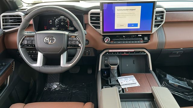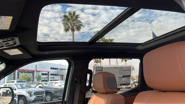 " We invite you to come experience the friendly Desert Toyota buying experience. "You'll definitely feel the difference!! Did you find your dream car on our website? Photos and pricing are uploaded quickly on a daily basis, therefore pricing does not reflect or include "taxes, title, license or dealer doc fee. All pricing and savings cannot be combined with any current advertised or special sales event price. This Toyota Tundra is equipped with the following features: 4WD, Leather, 10-Way Power Adjustable Heated and Ventilated Front Seats, 12 Speakers, 3.31 Axle Ratio, 4-Wheel Disc Brakes, ABS brakes, Air Conditioning, Alloy wheels, AM/FM radio: SiriusXM, Apple CarPlay/Android Auto, Auto High-beam Headlights, Auto-dimming door mirrors, Auto-dimming Rear-View mirror, Automatic temperature control, Be the first!! Fresh inventory, just arrived!!, Brake assist, Bumpers: body-color, Chrome Exhaust Tail Pipe & Diffuser, Compass, Delay-off headlights, Driver door bin, Driver vanity mirror, Dual front impact airbags, Dual front side impact airbags, Electronic Stability Control, Emergency communication system: Safety Connect (up to 10-year trial subscription), Exterior Parking Camera Rear, Front anti-roll bar, Front Bucket Seats, Front Center Armrest, Front dual zone A/C, Front fog lights, Front reading lights, Front wheel independent suspension, Fully automatic headlights, Garage door transmitter: HomeLink, Heated door mirrors, Heated front seats, Heated rear seats, Heated steering wheel, Illuminated entry, Knee airbag, Leather Shift Knob, Leather steering wheel, Low tire pressure warning, Memory seat, Navigation system: Drive Connect Cloud Navigation (1-year trial subscription), Occupant sensing airbag, Outside temperature display, Overhead airbag, Overhead console, Panic alarm, Passenger door bin, Passenger vanity mirror, Power door mirrors, Power driver seat, Power moonroof, Power passenger seat, Power steering, Power windows, Premium Leather Seat Trim, Radio data system, Radio: Premium Audio, Rain sensing wipers, Rear reading lights, Rear seat center armrest, Rear step bumper, Rear window defroster, Remote keyless entry, Safety Connect, Security system, Speed control, Speed-sensing steering, Speed-Sensitive Wipers, Split folding rear seat, Steering wheel memory, Steering wheel mounted audio controls, Tachometer, Telescoping steering wheel, Tilt steering wheel, Traction control, Trip computer, Turn signal indicator mirrors, Variably intermittent wipers, Ventilated front seats, Ventilated rear seats, Voltmeter, and Wheels: 20" Machined Finish Alloy.