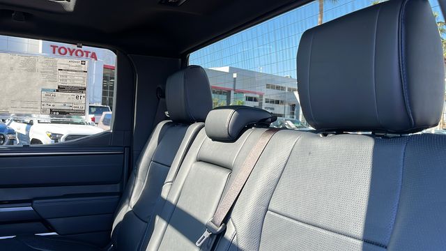 " We invite you to come experience the friendly Desert Toyota buying experience. "You'll definitely feel the difference!! Did you find your dream car on our website? Photos and pricing are uploaded quickly on a daily basis, therefore pricing does not reflect or include "taxes, title, license or dealer doc fee. All pricing and savings cannot be combined with any current advertised or special sales event price. This Toyota Tundra is equipped with the following features: TRD Off-Road Package, 4WD, Blk Premium Lth Leather, 10-Way Power Adjustable Heated and Ventilated Front Seats, 12 Speakers, 3.31 Axle Ratio, 3" Lift Kit, 4-Wheel Disc Brakes, ABS brakes, Air Conditioning, All Weather Floor Liners, Alloy wheels, AM/FM radio: SiriusXM, Apple CarPlay/Android Auto, Auto High-beam Headlights, Auto-dimming door mirrors, Auto-dimming Rear-View mirror, Automatic temperature control, Be the first!! Fresh inventory, just arrived!!, Black Front Bumper Letters, Brake assist, Bumpers: body-color, Compass, Delay-off headlights, Driver door bin, Driver vanity mirror, Dual front impact airbags, Dual front side impact airbags, Electronic Stability Control, Emergency communication system: Safety Connect (up to 10-year trial subscription), Exterior Parking Camera Rear, Front anti-roll bar, Front Bucket Seats, Front Center Armrest, Front dual zone A/C, Front fog lights, Front reading lights, Front wheel independent suspension, Fully automatic headlights, Garage door transmitter: HomeLink, Head Up Display (HUD), Heated door mirrors, Heated front seats, Heated rear seats, Heated steering wheel, Illuminated entry, Knee airbag, Leather Shift Knob, Leather steering wheel, Low tire pressure warning, Memory seat, Multimedia Glass Screen Protector, Navigation system: Drive Connect Cloud Navigation (1-year trial subscription), Occupant sensing airbag, Outside temperature display, Overhead airbag, Overhead console, Panic alarm, Passenger door bin, Passenger vanity mirror, Power door mirrors, Power driver seat, Power moonroof, Power passenger seat, Power steering, Power windows, Premium Leather Seat Trim, Radio data system, Radio: Premium Audio, Rain sensing wipers, Rear reading lights, Rear seat center armrest, Rear step bumper, Rear window defroster, Remote keyless entry, Safety Connect, Security system, Speed control, Speed-sensing steering, Speed-Sensitive Wipers, Split folding rear seat, Steering wheel memory, Steering wheel mounted audio controls, Tachometer, Tailgate Insert - Black, Telescoping steering wheel, Tilt steering wheel, Traction control, Trip computer, Turn signal indicator mirrors, Variably intermittent wipers, Ventilated front seats, Ventilated rear seats, Voltmeter, and Wheels: 20" Dark Painted Alloy.