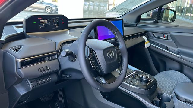 " We invite you to come experience the friendly Desert Toyota buying experience. "You'll definitely feel the difference!! Did you find your dream car on our website? Photos and pricing are uploaded quickly on a daily basis, therefore pricing does not reflect or include "taxes, title, license or dealer doc fee. All pricing and savings cannot be combined with any current advertised or special sales event price. This Toyota bZ is equipped with the following features: 4-Wheel Disc Brakes, 6 Speakers, ABS brakes, Air Conditioning, Alloy wheels, AM/FM radio: SiriusXM, Apple CarPlay/Android Auto, Auto High-beam Headlights, Auto-dimming Rear-View mirror, Automatic temperature control, Be the first!! Fresh inventory, just arrived!!, Brake assist, Bumpers: body-color, Carpet Floor Mats/Cargo Mat, Delay-off headlights, Driver door bin, Driver vanity mirror, Dual front impact airbags, Dual front side impact airbags, Electronic Stability Control, Emergency communication system: Safety Connect (10-year trial), Exterior Parking Camera Rear, Fabric/SofTex Seat Trim, Four wheel independent suspension, Front anti-roll bar, Front Bucket Seats, Front Center Armrest, Front dual zone A/C, Front reading lights, Fully automatic headlights, Garage door transmitter: HomeLink, Heated door mirrors, Heated Front Seats, Heated front seats, Heated steering wheel, Illuminated entry, Knee airbag, Leather steering wheel, Low tire pressure warning, Multimedia Glass Screen Protector, Navigation system: Drive Connect (3 year trial) includes Cloud Navigation with real time traffic and Google POI, Occupant sensing airbag, Outside temperature display, Overhead airbag, Overhead console, Panic alarm, Panoramic Fixed-Glass Roof with Power Sunshade, Passenger door bin, Passenger vanity mirror, Power door mirrors, Power driver seat, Power Liftgate, Power steering, Power windows, Radio data system, Radio: 14" Toyota Audio Multimedia, Rain sensing wipers, Rear anti-roll bar, Rear seat center armrest, Rear window defroster, Remote keyless entry, Security system, SiriusXM Trial Offering: 33 Months, Speed control, Speed-sensing steering, Split folding rear seat, Spoiler, Steering wheel mounted audio controls, Telescoping steering wheel, Tilt steering wheel, Traction control, Trip computer, Turn signal indicator mirrors, Variably intermittent wipers, and Wheels: 18" Alloy with Covers.