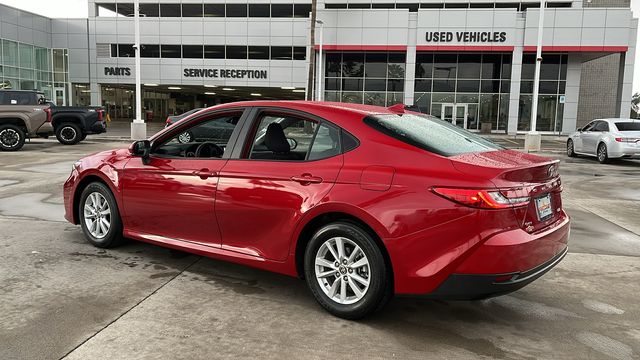 Supersonic Red 2025 Toyota Camry LE FWD eCVT 2.5L 4-Cylinder 16V DOHC 2.5L 4-Cylinder 16V DOHC, Black w/Fabric Seat Trim, ABS brakes, Active Cruise Control, Alloy wheels, Electronic Stability Control, Front dual zone A/C, Heated door mirrors, Illuminated entry, Low tire pressure warning, Remote keyless entry, Traction control.