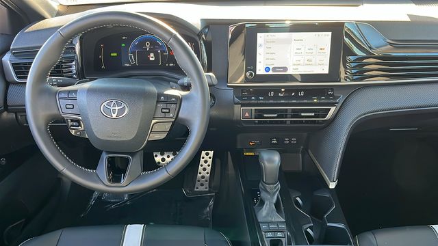 Black 2025 Toyota Camry SE FWD eCVT 2.5L 4-Cylinder 16V DOHC 2.5L 4-Cylinder 16V DOHC, Black w/SofTex and Fabric Seat Trim.